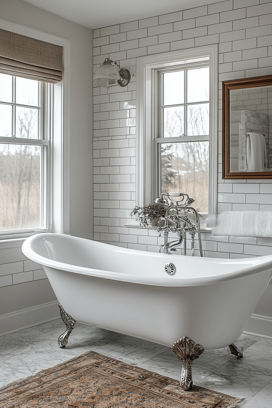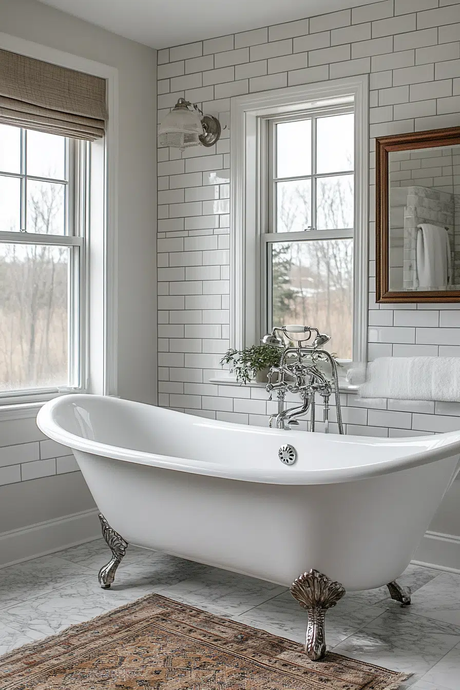 Create a vintage modern bathroom that blends timeless elegance with a modern twist. Pair a clawfoot tub with sleek faucets and a neutral palette to balance charm and functionality. Add classic subway tiles as a nostalgic backdrop to elevate the space effortlessly.