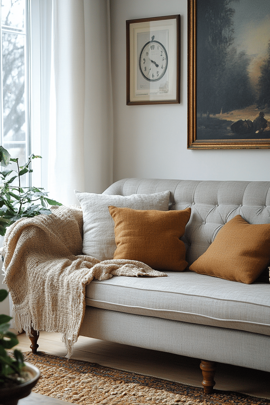 Transform your living area into a Beachside Bliss vintage modern living room using light colors and natural textures. Vintage maritime decor like old clocks add character, while modern seating keeps the space airy. This style merges beach tranquility with contemporary design at a low cost.