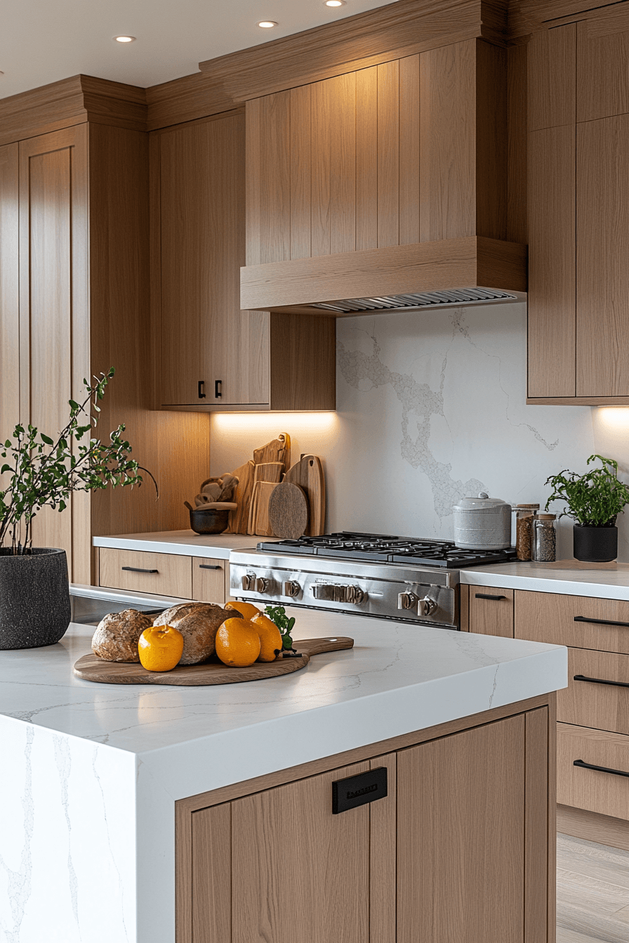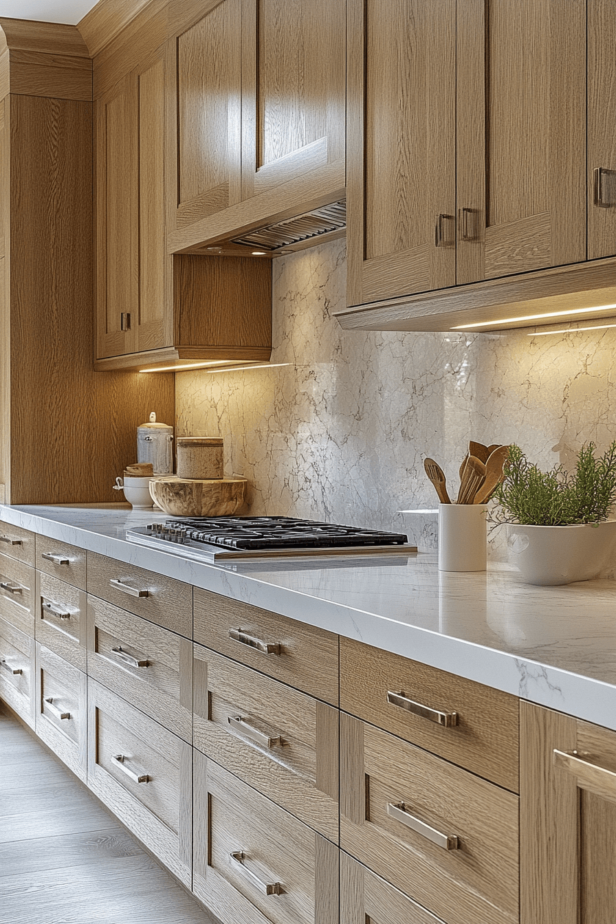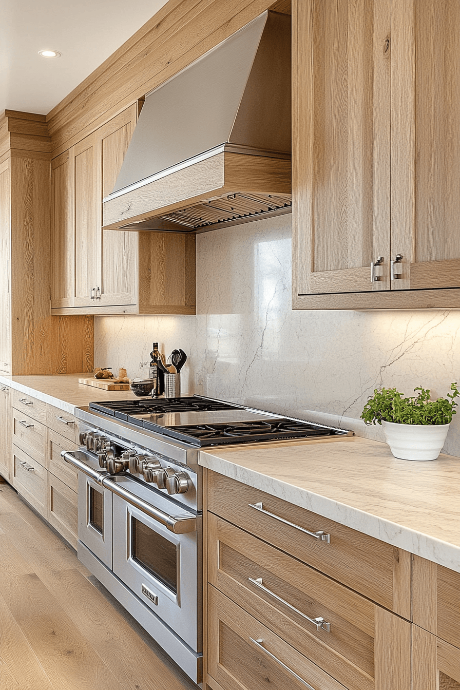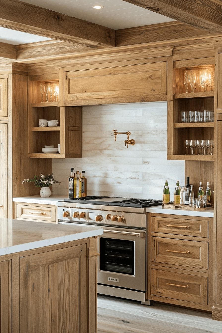11. Refined Oak Kitchen Elegance
