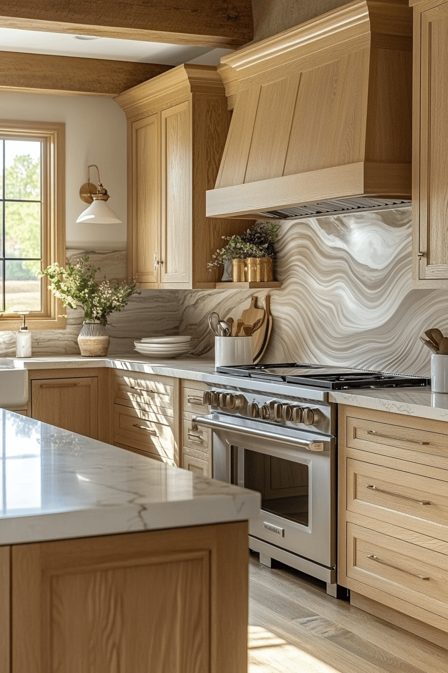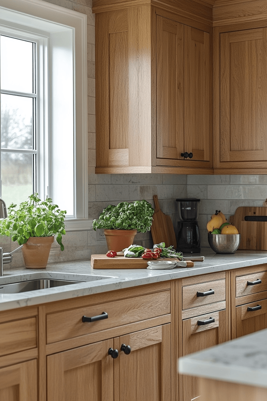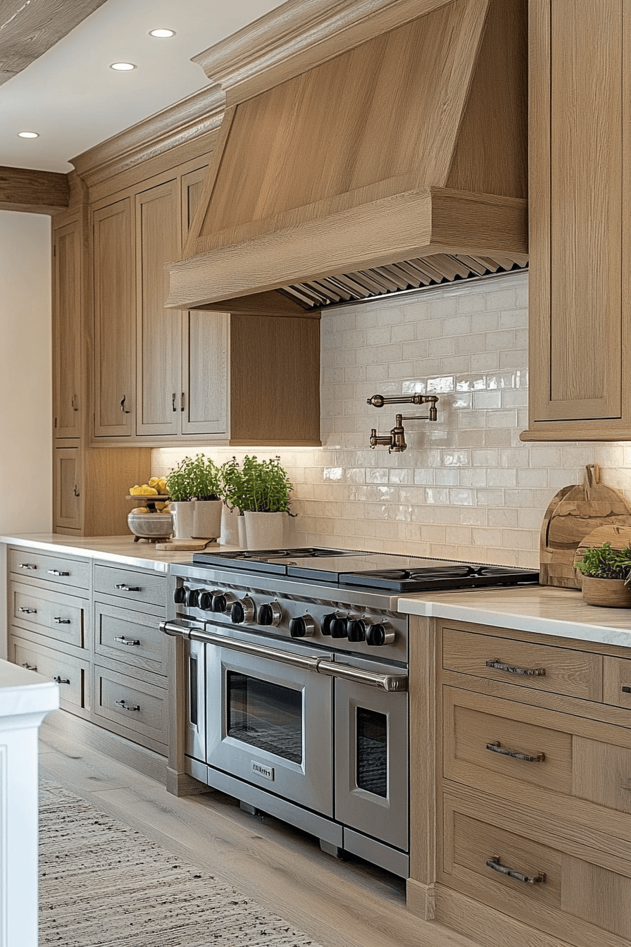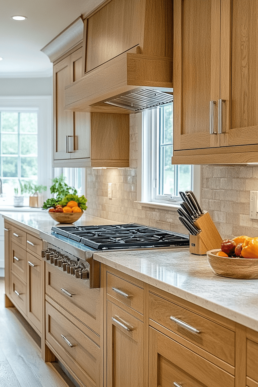 11. Refined Oak Kitchen Elegance