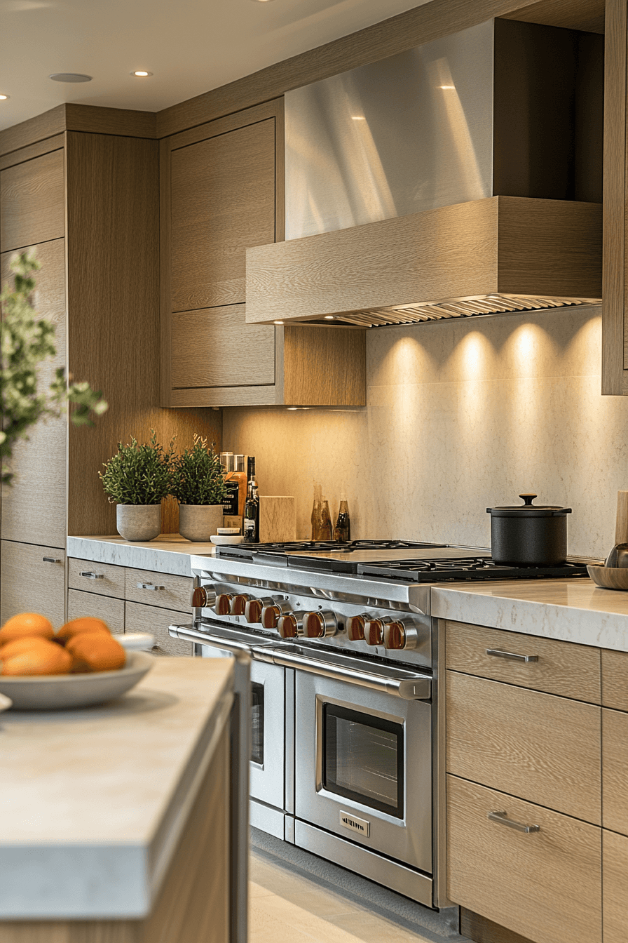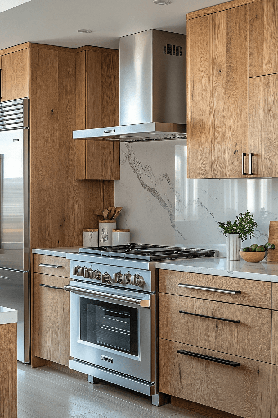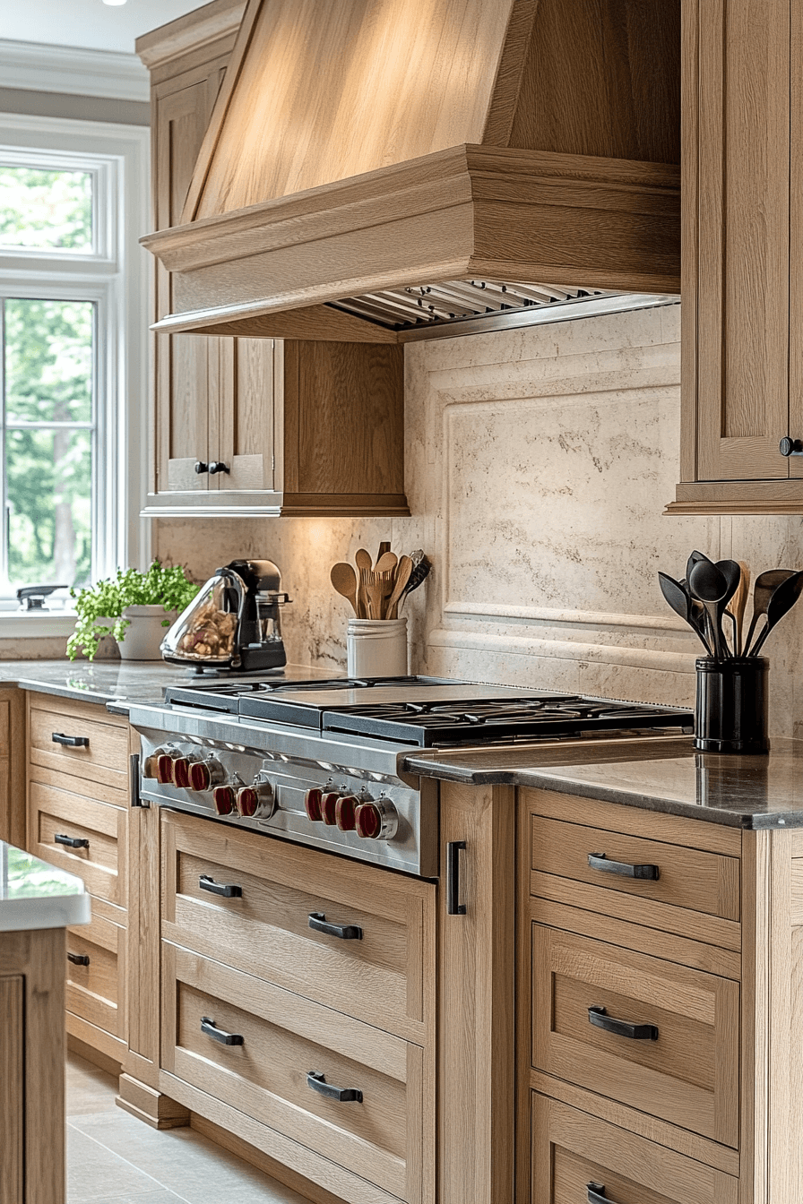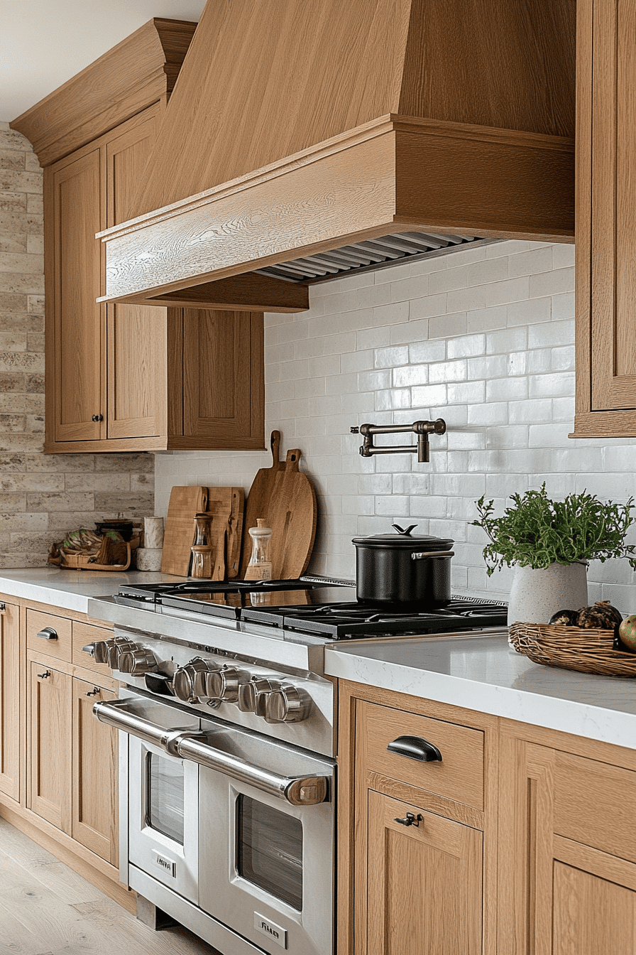 11. Refined Oak Kitchen Elegance