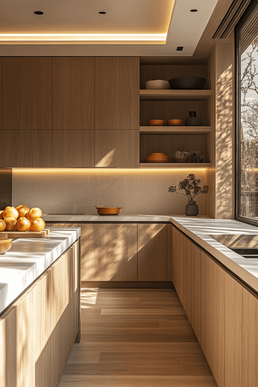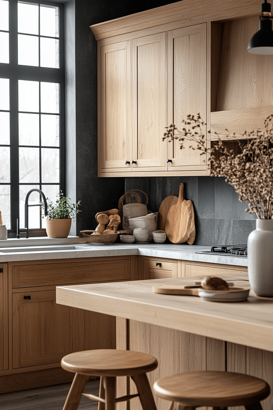 13. Peaceful Zen Oak Kitchen